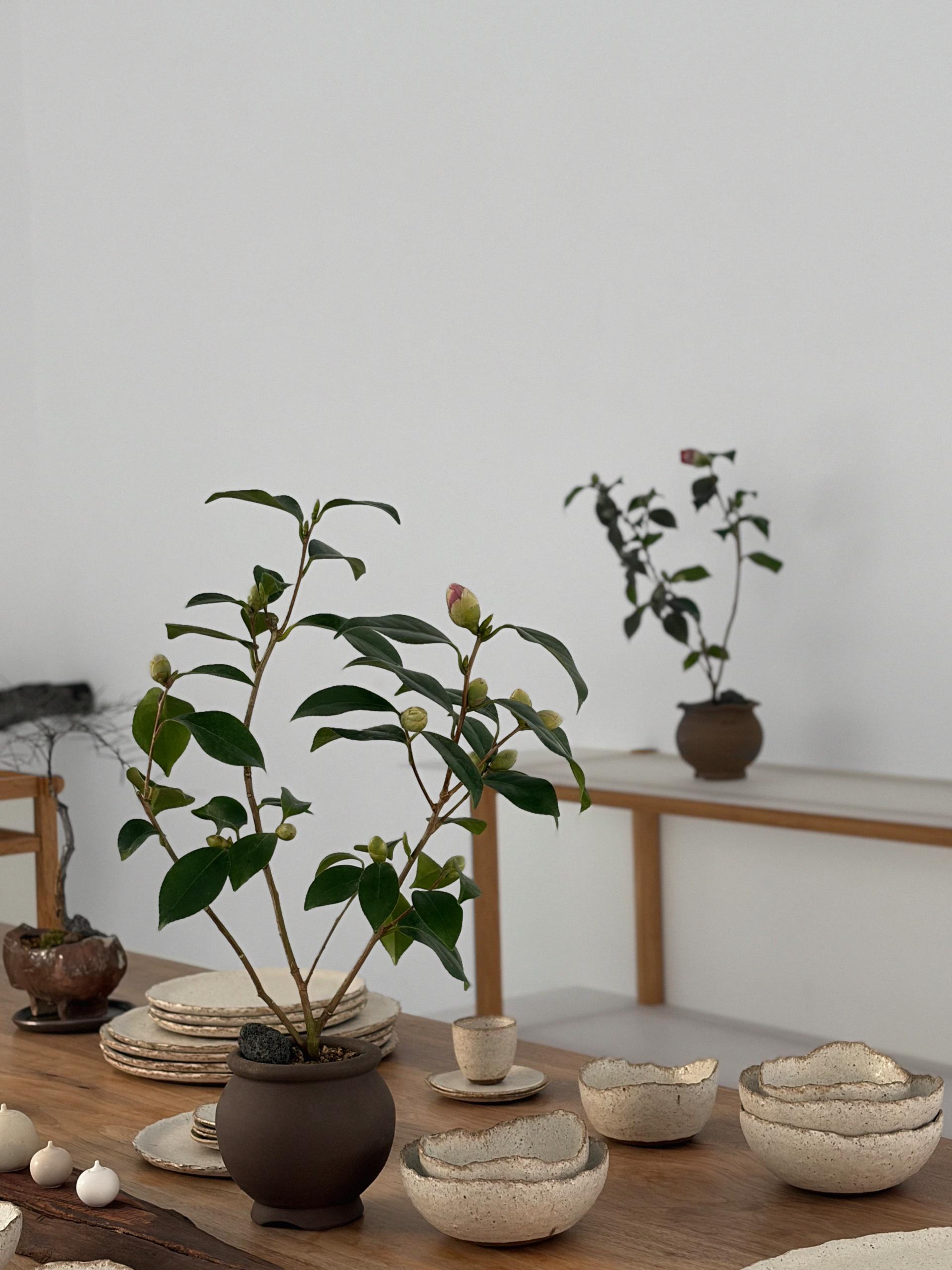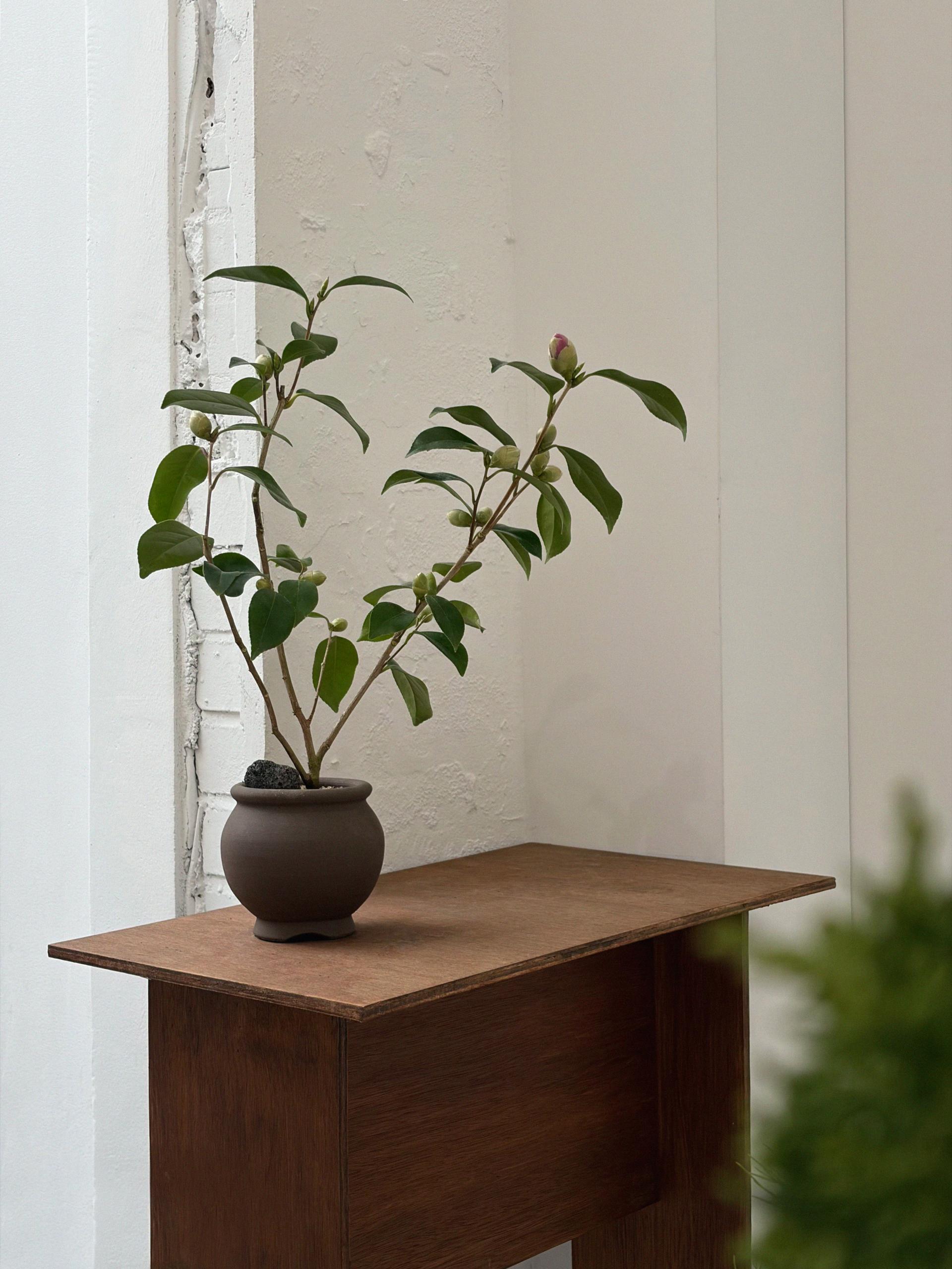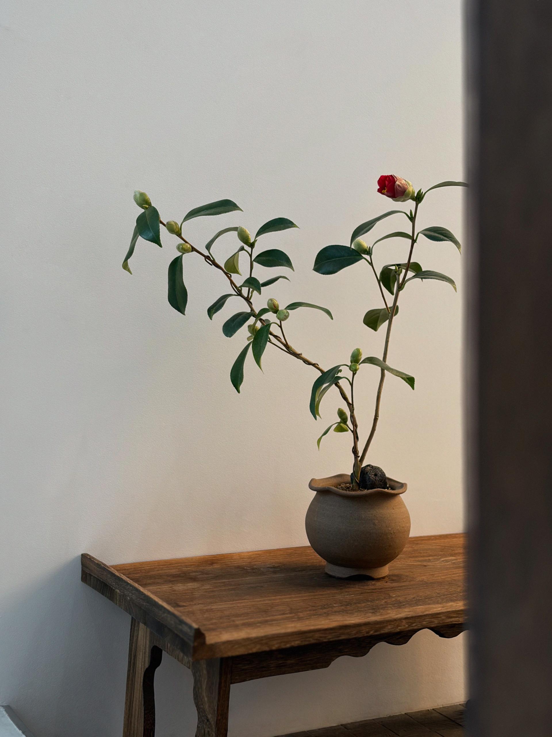 동백나무는 차나무과에 속하는 상록 활엽 관목으로, 윤기 나는 짙은 녹색 잎과 단단한 수형이 특징인 식물입니다. 겨울부터 이른 봄까지 붉고 선명한 꽃을 피워 계절감을 더해주며, 꽃과 잎의 대비가 아름다워 관상용으로 많은 사랑을 받습니다. 단정한 수형과 사계절 푸르름으로 정원수나 분재로도 가치가 높습니다.