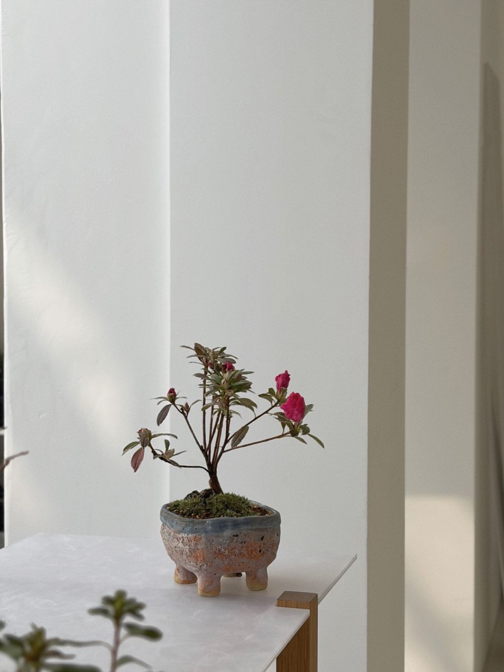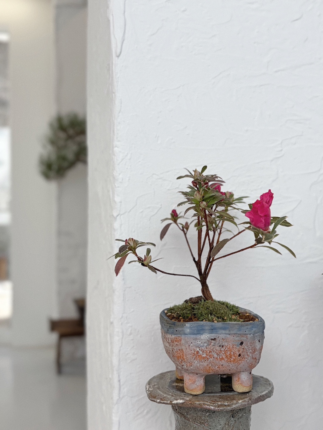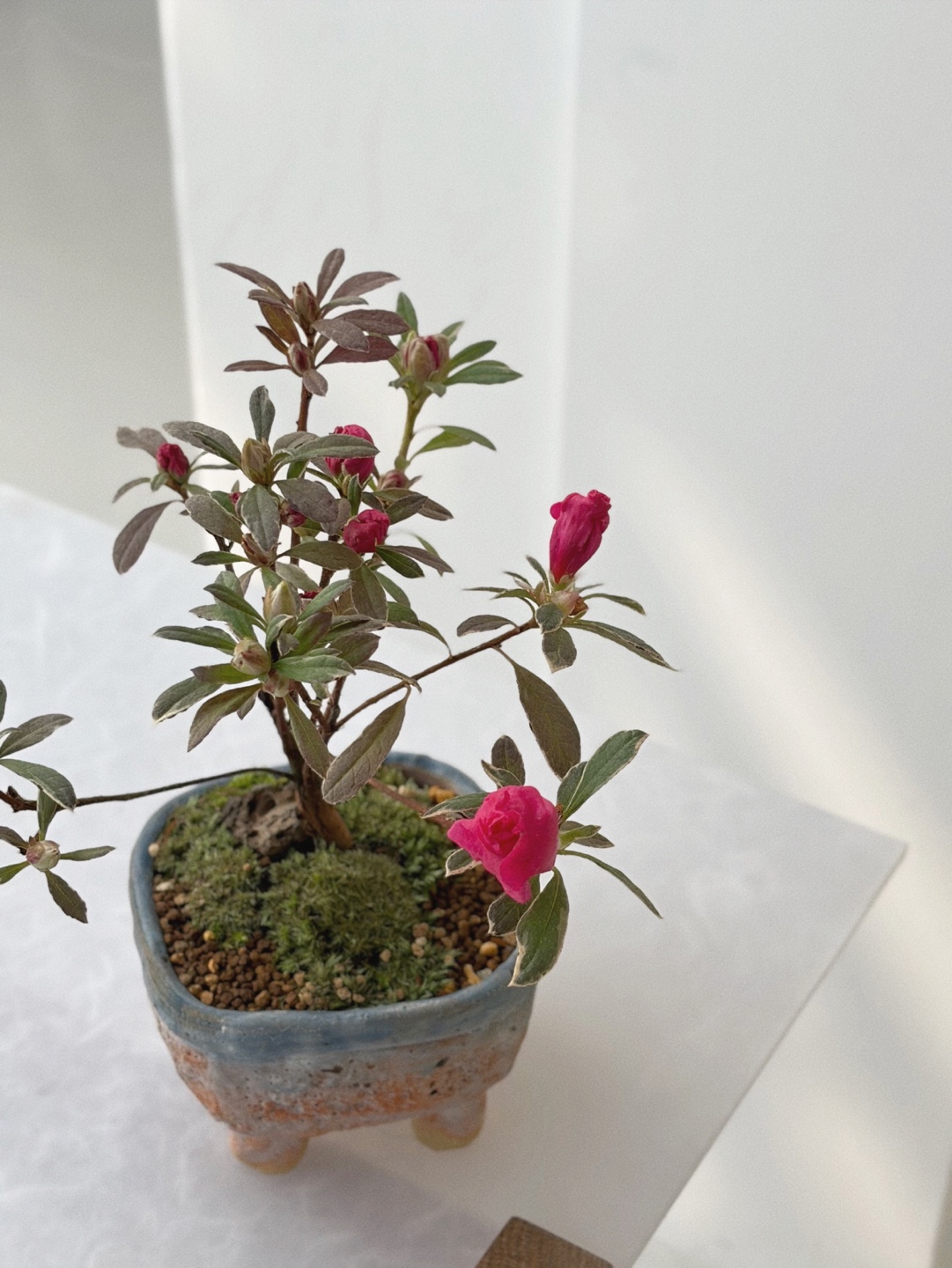 미니무늬만병초는 잎 가장자리에 은은한 무늬가 들어간 상록성 수종으로, 작고 단정한 수형이 특징입니다. 개화 시기에는 부드럽고 고운 색감의 꽃이 피어 잎과 조화를 이루며 더욱 풍성한 볼거리를 더합니다. 잎의 색 대비와 꽃의 어우러짐이 섬세해 분재로 감상하기 좋은 품종입니다.