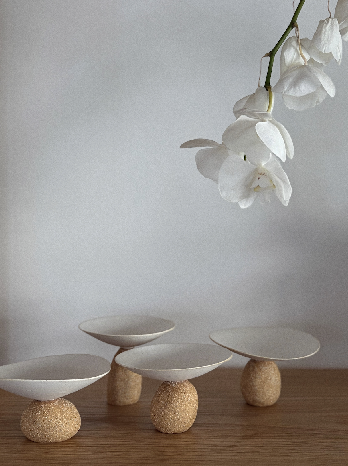 돌멩이를 닮은 굽 위에 접시를 얹은 형태의 플레이트입니다.