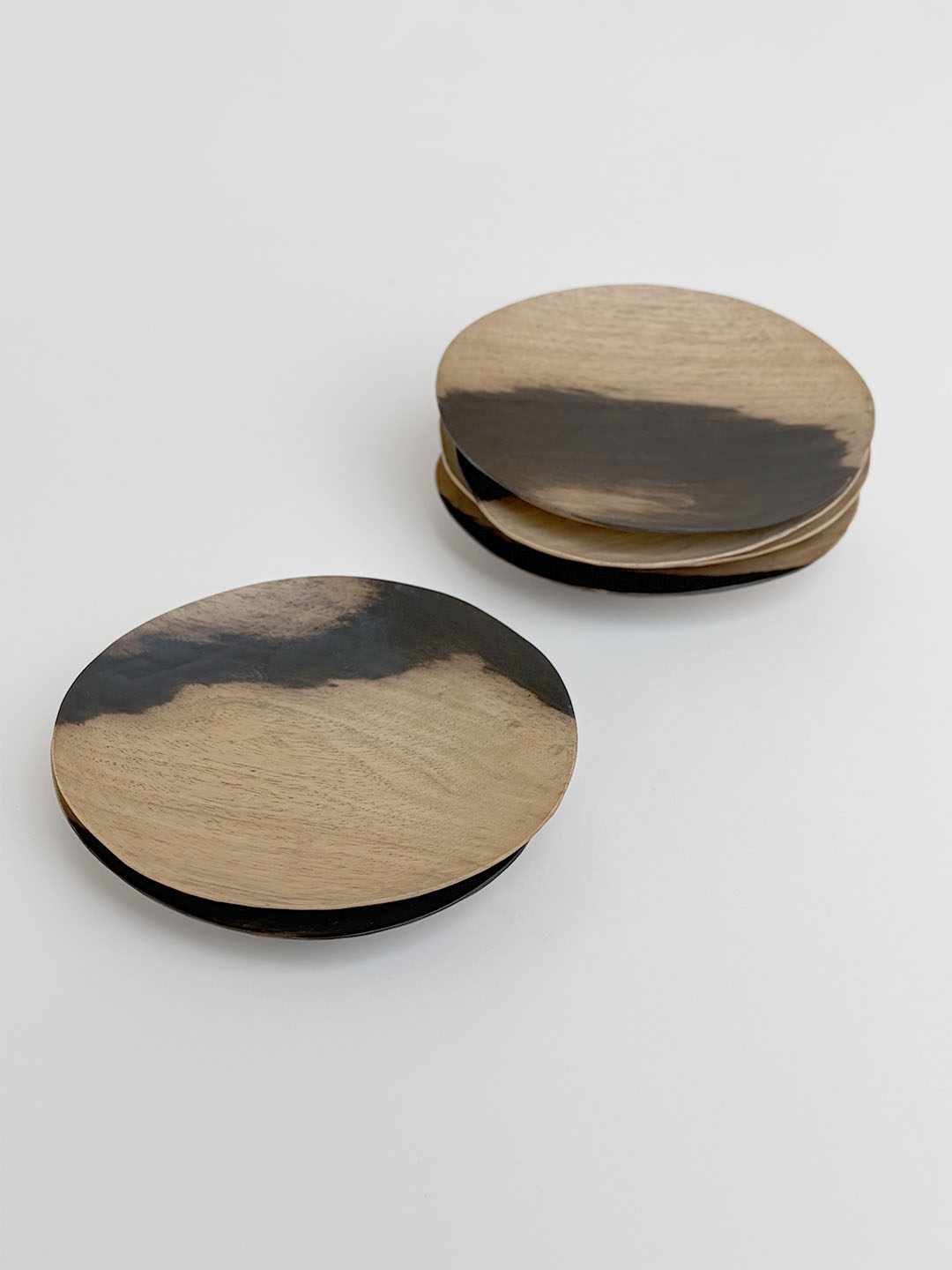 먹감의 짙은 색이 스며든 다식접시입니다.