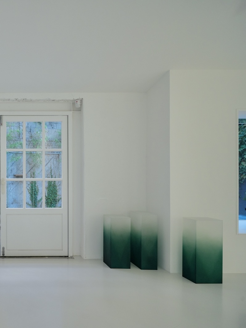 그라데이션 된 아크릴로 제작된 스툴입니다.