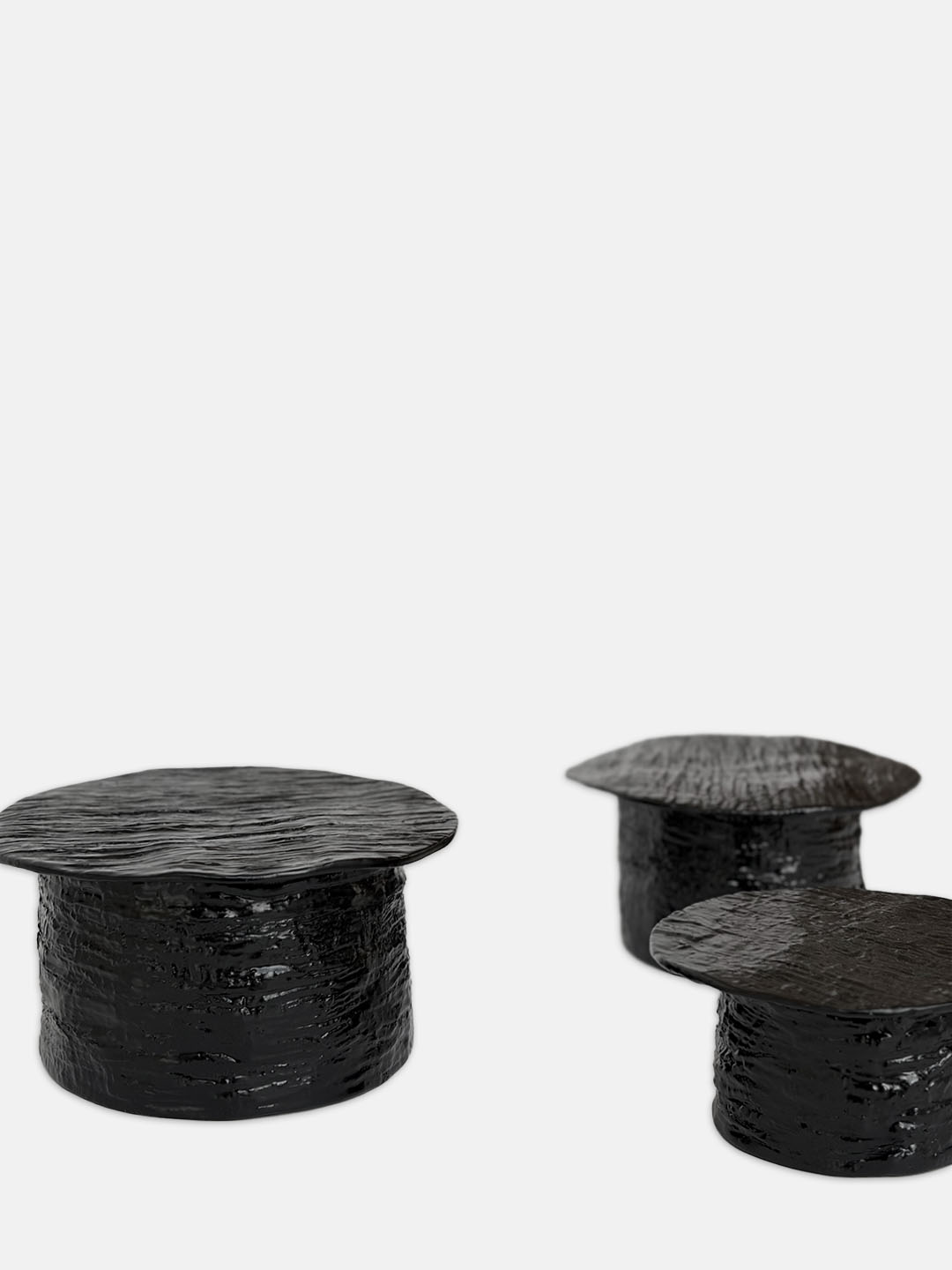 서로 다른 세 가지 사이즈가 겹치거나 나란히 놓였을 때 자연스러운 구성을 만들어냅니다.