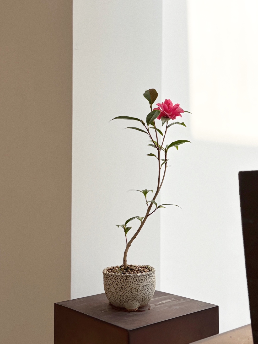 동백나무는 차나무과에 속하는 상록 활엽 관목으로, 윤기 나는 짙은 녹색 잎과 단단한 수형이 특징인 식물입니다. 겨울부터 이른 봄까지 붉고 선명한 꽃을 피워 계절감을 더해주며, 꽃과 잎의 대비가 아름다워 관상용으로 많은 사랑을 받습니다. 단정한 수형과 사계절 푸르름으로 정원수나 분재로도 가치가 높습니다.