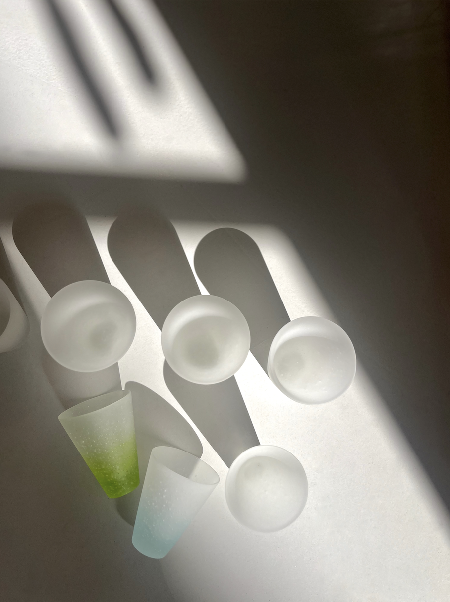 은은한 반투명의 유리로 비치는 내용물에 따라 색다른 매력을 보이는 잔입니다.