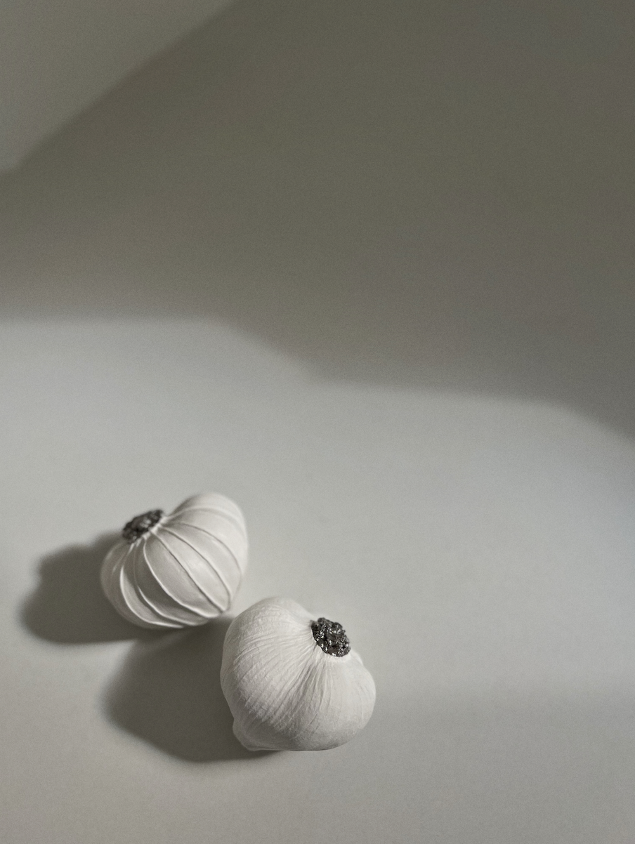 마늘의 형상을 그대로 재현한 도자기 오브제입니다.