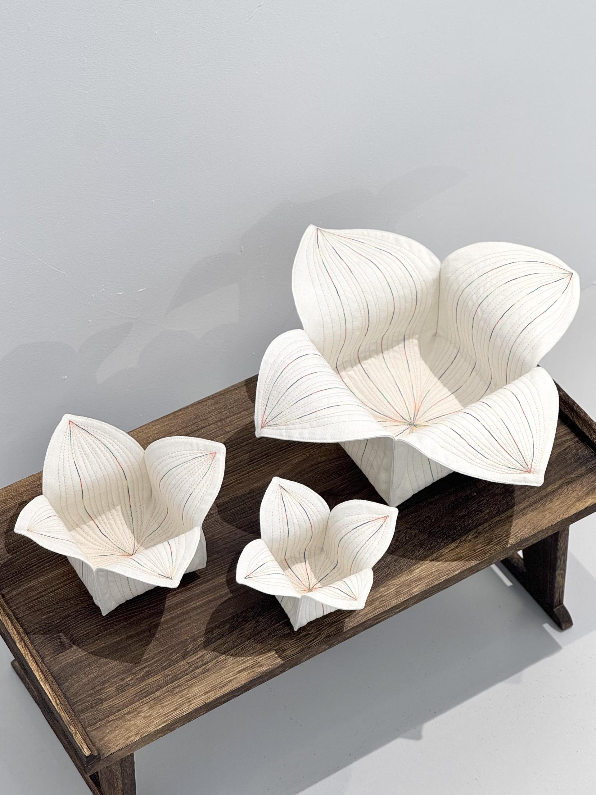 작가 뵤량은 전통 누비에 대한 현대적인 누빔의 재해석과 아름다움인 꽃이라는 두 천 사이에 일상성을 담고 바느질하여 누비를 꽃으로 다시 피운다. 정성스럽게 누빈 꽃잎 모양의 작품들은 햇살을 받아 활짝 핀 꽃잎 사이에서 정다운 대화를 즐기는 모습을 연상시키며, 차와 더불어 ‘일상의 여유’라는 소박한 아름다움을 선사한다.