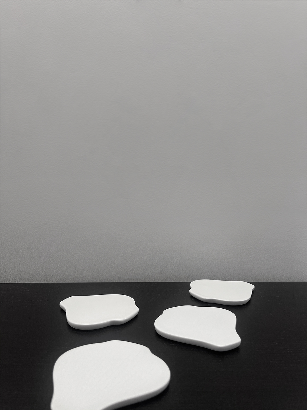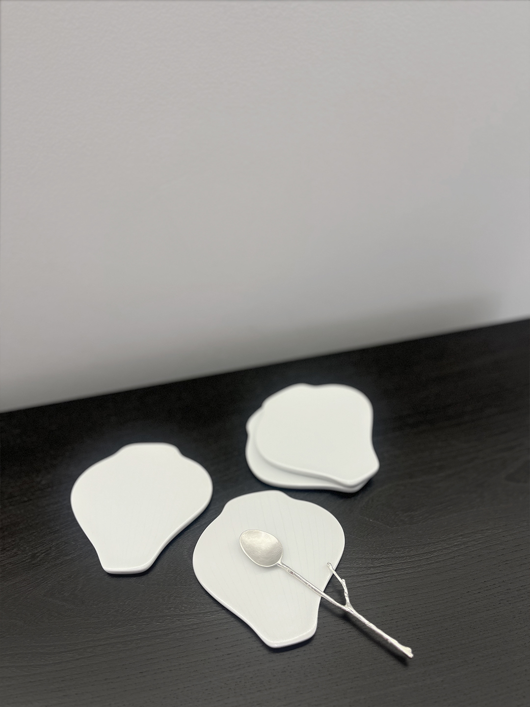 백자의 은은한 빛을 지닌 달항아리 모양 수저받침 4점과 크기가 다른 무광 플레이트 2종을 함께 구성한 세트입니다.